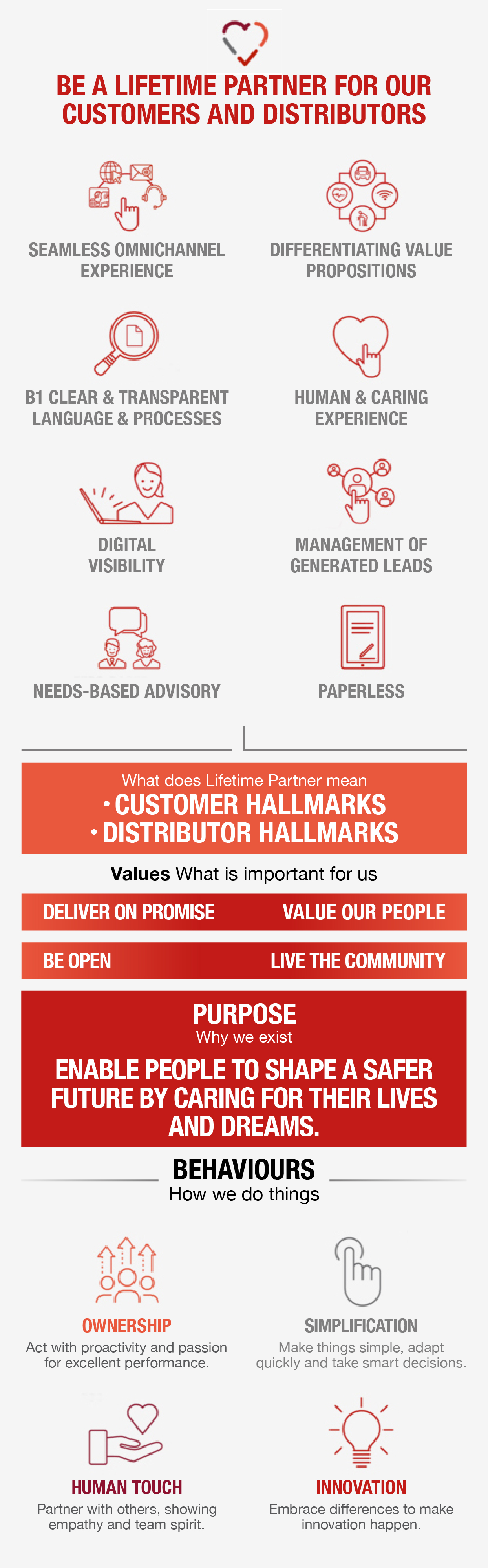 To clarify what the Lifetime partner transformation means concretely in our everyday life and how we need to change, a simple set of 4 behaviours have been co-created with hundreds of colleagues in the past year.